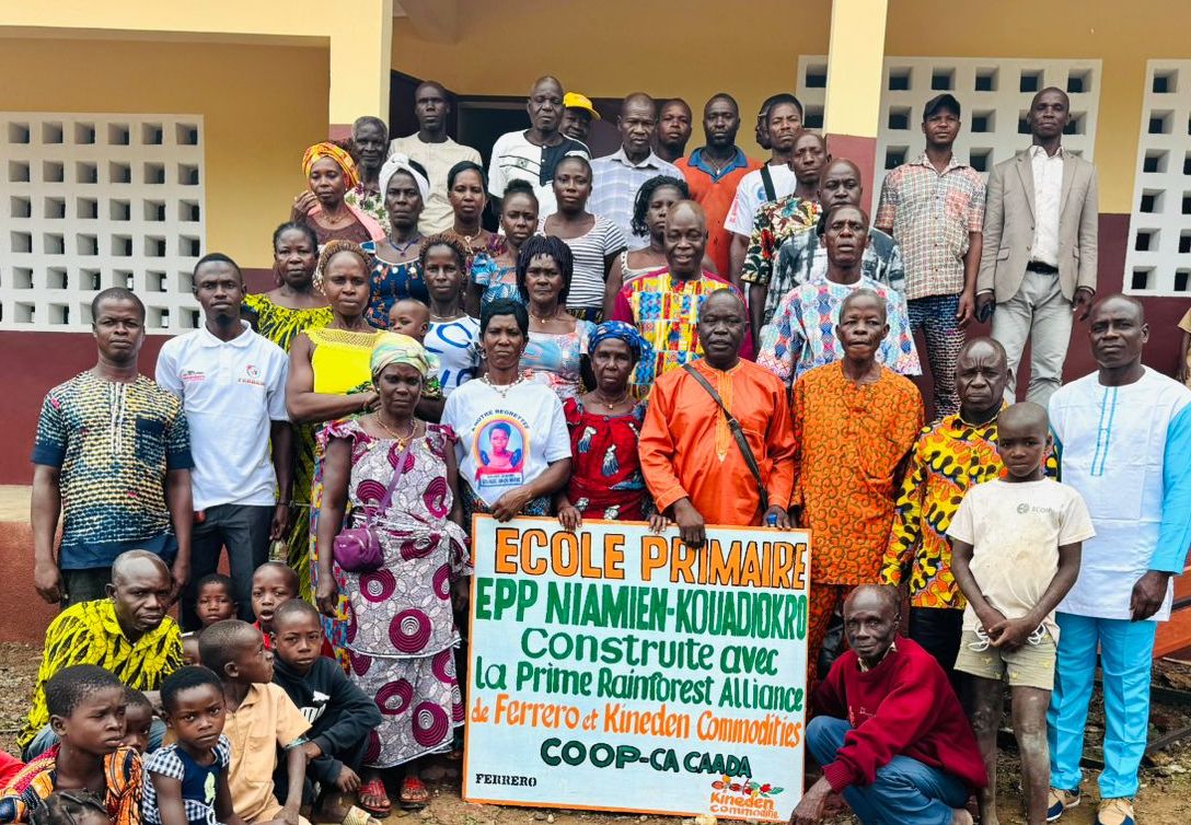 Dans le cadre de sa politique de développement durable et de soutien aux communautés cacaoyères, la société coopérative KINEDEN a inauguré une école primaire dans le village de KOUADIOKRO. Ce projet a été réalisé en collaboration avec la coopérative partenaire CAADA, marquant une étape importante dans l’amélioration des conditions de vie des producteurs et de leurs familles.